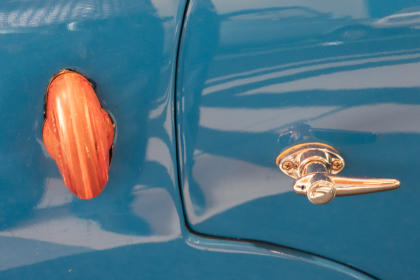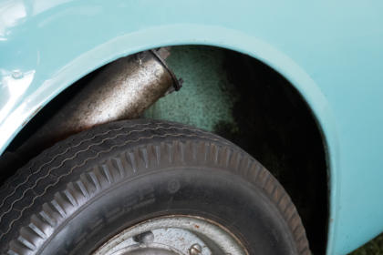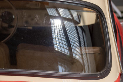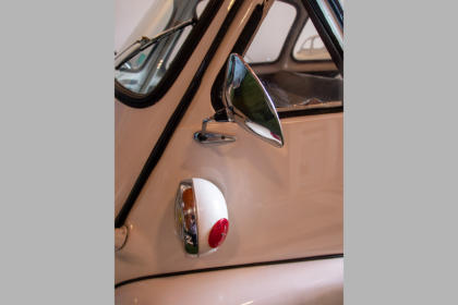 De auto heeft maar 1 koplamp en ook maar 1 passagiersdeur die zich aan de