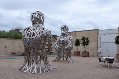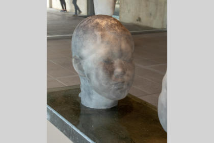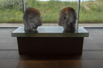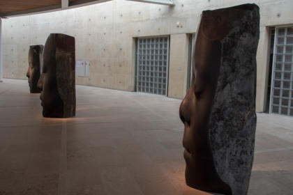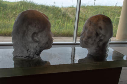 faam met zijn metershoge sculpturen van vrouwenhoofden in de