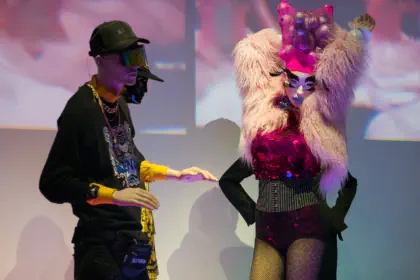 met vernieuwende, kleurrijke kostuums.