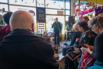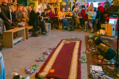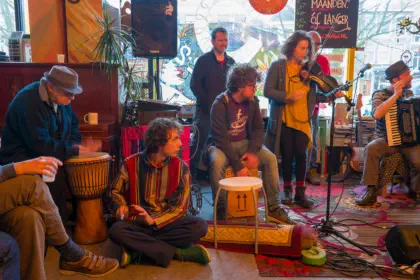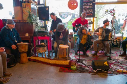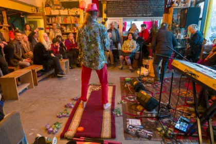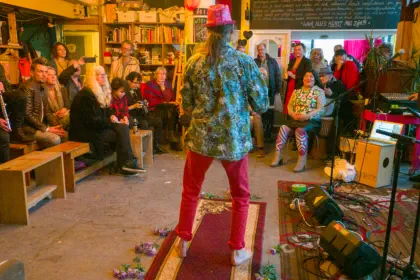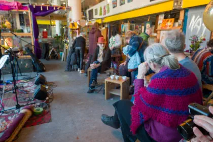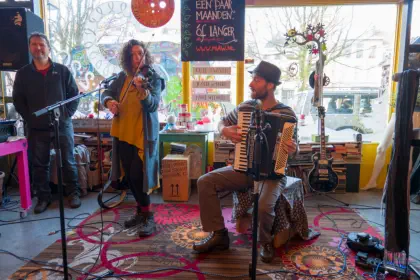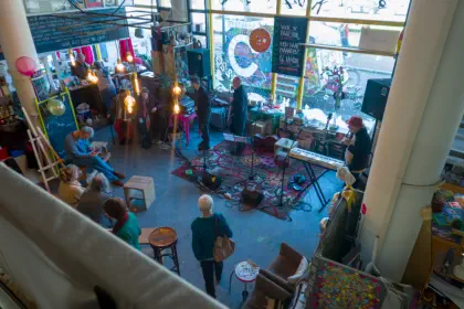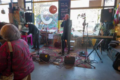 Een galerie op locatie waar kunst wordt getoond van allerlei mensen, zonder ballotage.