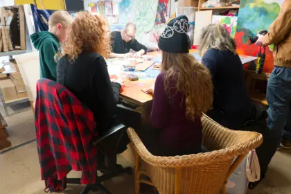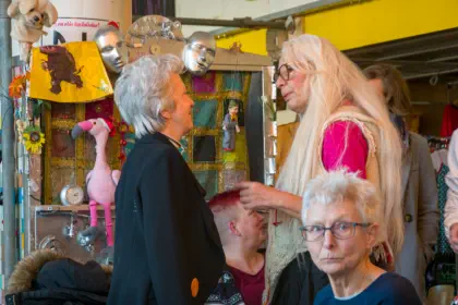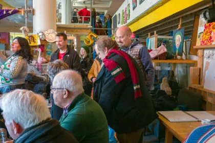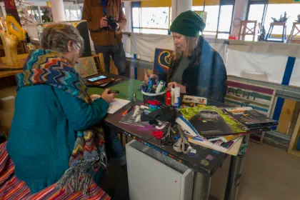 Voor bezoekers is het makkelijk contact te maken met een of meerdere kunstenaars, al dan niet aan het werk.