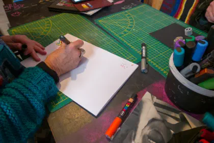 Iedereen kan en mag er binnenlopen en zich laten inspireren door wat er gaande is.
