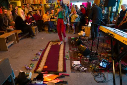 Door het open karakter vindt er tussen de kunstenaars in verschillende disciplines een veelheid van uitwisseling