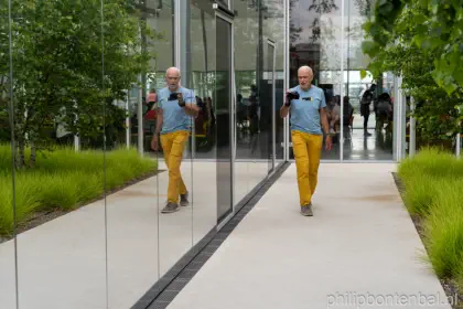 Daarom werd in een gebouwtje op het bouwterrein uitvoerig geëxperimenteerd met een ingenieuze bovenlichtconstructie en werd veel