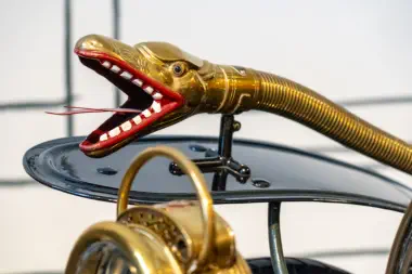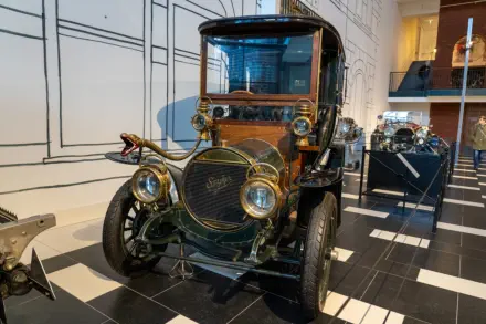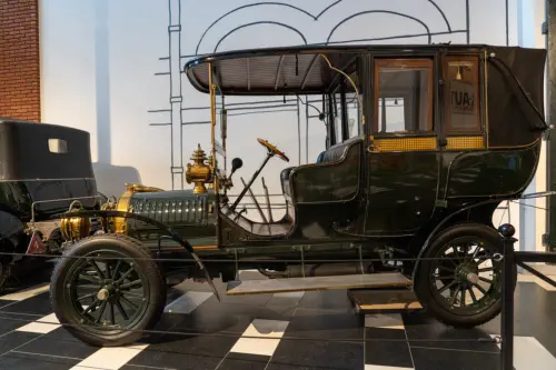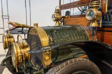 Net als een van de Double Phaetons die in het museum is te zien, is het een model 15/22-HP met een