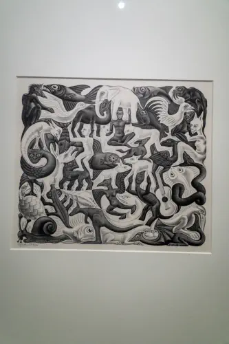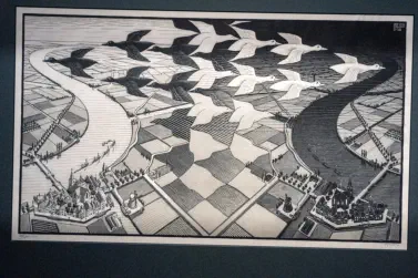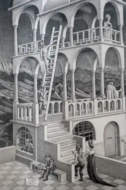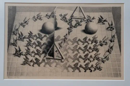 Zijn beroemde prenten, waarin optische illusies, onmogelijke architectuur, reflectie en