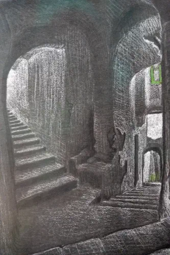 onmogelijke architectuur en oneindigheid; thema’s die ook centraal staan in het werk van