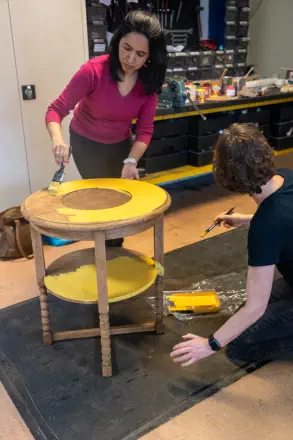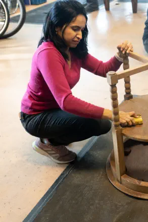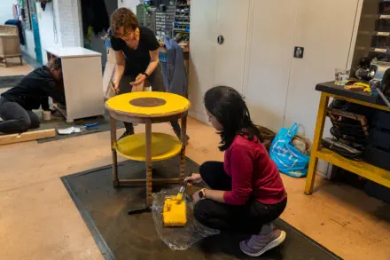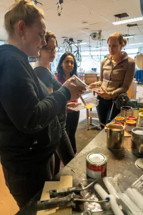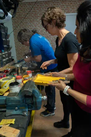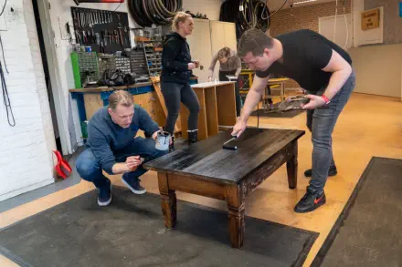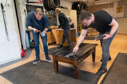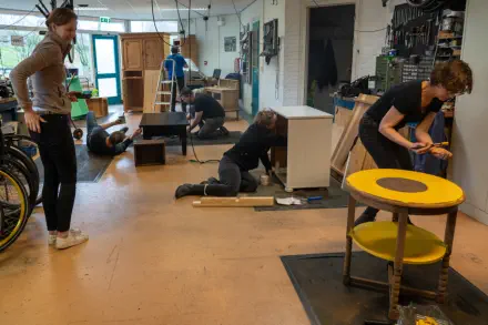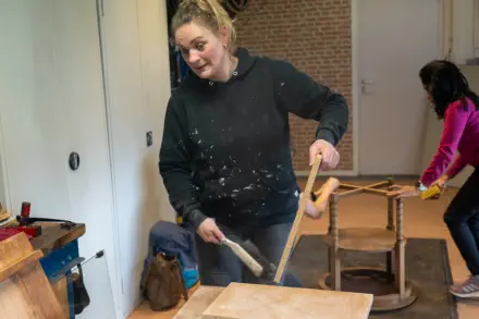 Bij de Piëzo Ambachtenwerkplaats werd er samen met vrijwilligers van de Pelgrimshoeve diverse
